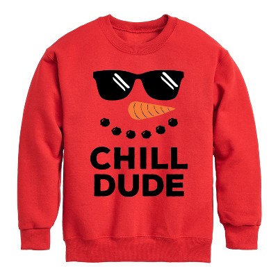 Boys' - Instant Message - Chill Dude Christmas Snowman Graphic Long Sleeve Fleece Sweatshirt