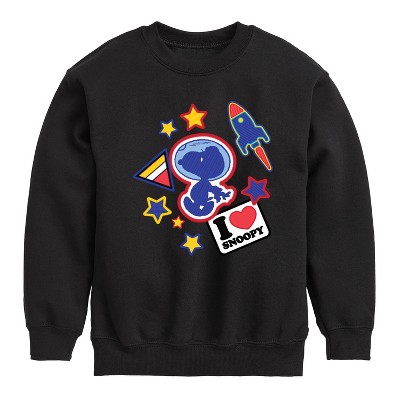 Boys' - Peanuts - Snoopy Christmas Lights Graphic Long Sleeve Fleece Sweatshirt