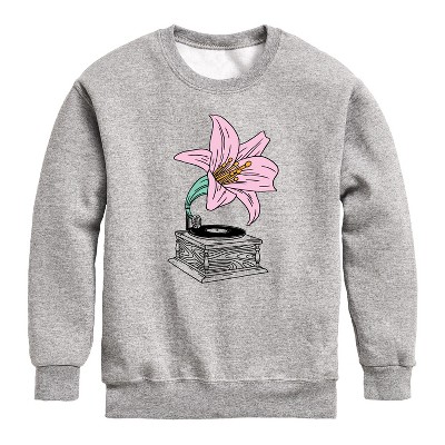 Boys' - Instant Message - Record Player Lily Graphic Long Sleeve Fleece Sweatshirt
