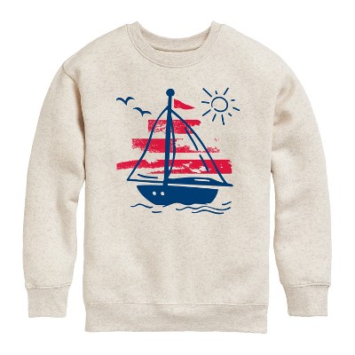 Boys' - Instant Message - Sketch Sailboat Graphic Long Sleeve Fleece Sweatshirt