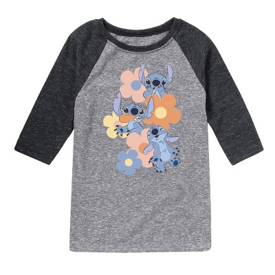 Boys' - Disney - Stitch Pop Flowers Raglan Graphic T-Shirt