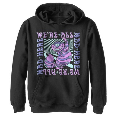 Boy's Alice in Wonderland Cheshire Cat We're All Mad Here Colorful Pull Over Hoodie