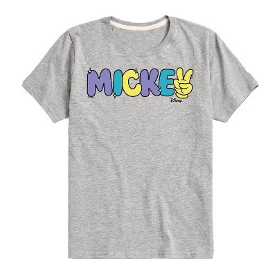 Boys' - Disney - Mickey Multicolor Hand Peace Sign Short Sleeve Graphic T-Shirt