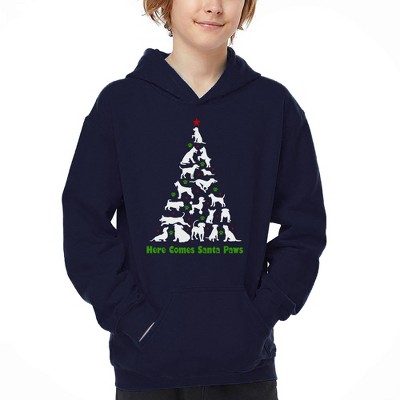 LA Pop Art Here Comes Santa Paws - Boy's Word Art Hooded Sweatshirt