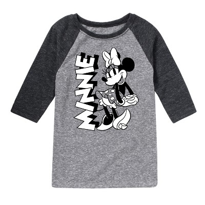 Boys' - Disney - Minnie Black And White Raglan Graphic T-Shirt