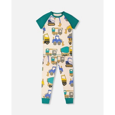 Deux par Deux Boy Organic Cotton Two-Piece Pyjama Set Beige Truck Print