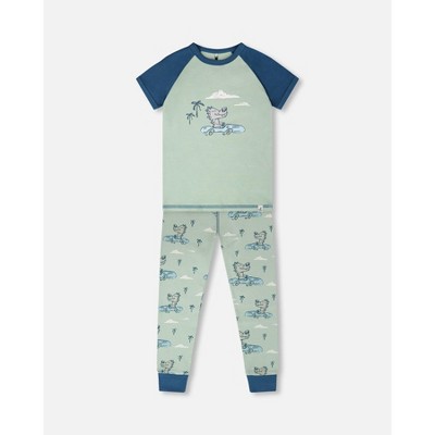 Deux par Deux Boy Organic Cotton Two-Piece Pyjama Set Green Crocodile Print