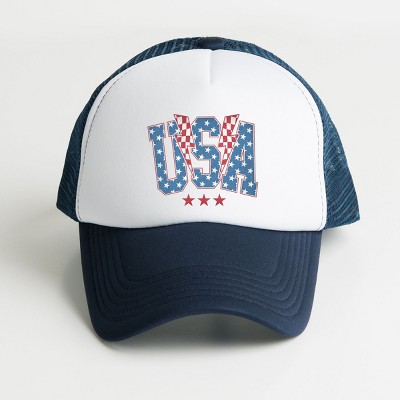 The Juniper Shop USA Checkered Lightning Youth Foam Trucker Hat - Youth - White Navy