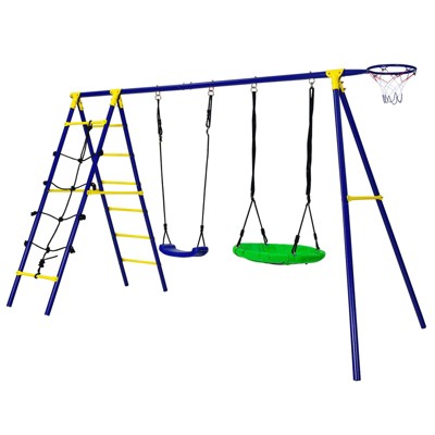 JANSNO 6 Function Metal Plastic Safe Swing Set with Net Swing for Age 3+