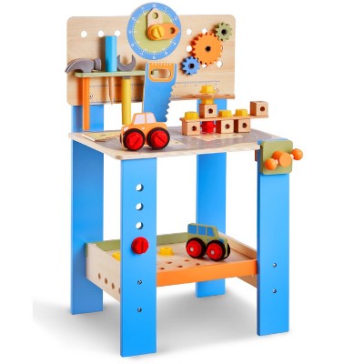 VEVOR Kids Workbench, 62 pcs, Wooden Tool Bench for Kids 3 Years and Up, Toddler Toy Workbench with Realistic Tools, Building Toy Set,Multicolor