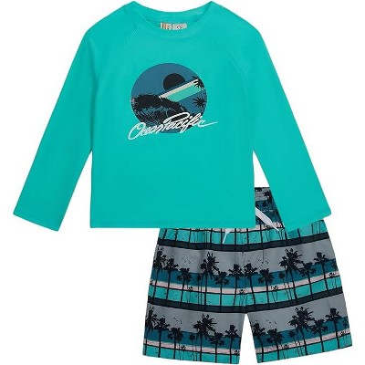 Ocean Pacific Toddler/Little and Big Boy's Rash Guard And Trunks Swimsuit Sets