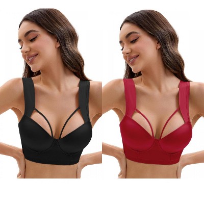 INSPIRE CHIC Women's Front Closure Push Up Wirefree Wide Straps U Back Tank Bras 2 Packs