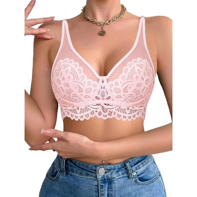 Allegra K Women's Full Coverage Wide Adjustable Straps Longline Hem Floral Lace Decor Wirefree Bra