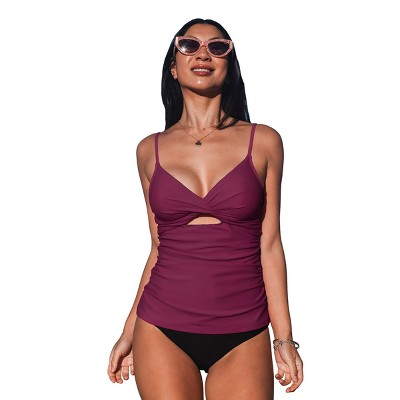 Women's Twist Shirred Mid Rise Tankini Sets Swimsuit - Cupshe