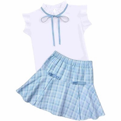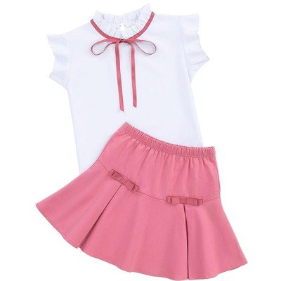 Girls' Skirt Sets 2 Piece Outfit Spring Summer Cute Tops Ruffle Mini Skirts with Bow
