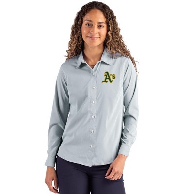 Seattle Mariners Cutter & Buck Stretch Oxford Womens Long Sleeve Dress Shirt