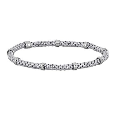 EVERLY JEWELRY | Sterling Silver Black, 9 white stations 2.5mm round Stretch Bracelet, 6 inch