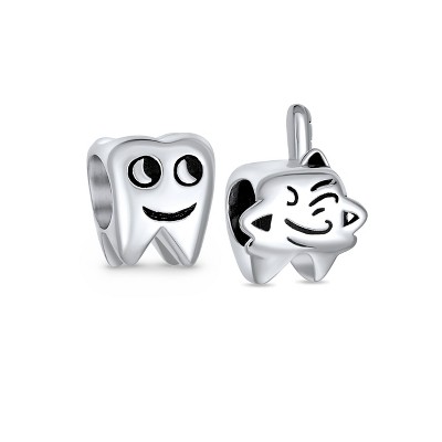 Bling Jewelry Set of 2 Smiling Tooth and Fairy Dentist Charm Bead Oxidized Sterling Silver