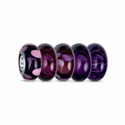Bling Jewelry Set Of 6 Violet Lavender Purple Burgundy Spacer Charm Bead Murano Glass Sterling Silver Core Fits European Style Bracelet