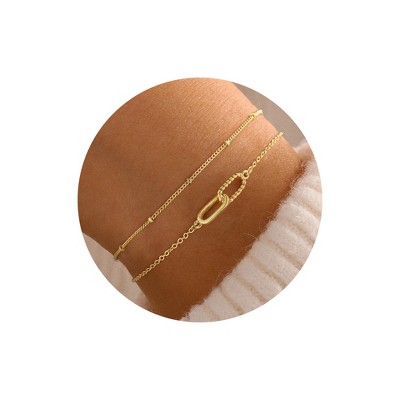 Turandoss 18K Gold Link Bracelets for Women Girls, Dainty Interlocking Circles Layered Bracelet, Birthday Gifts, Valentine's Day Gifts for Women
