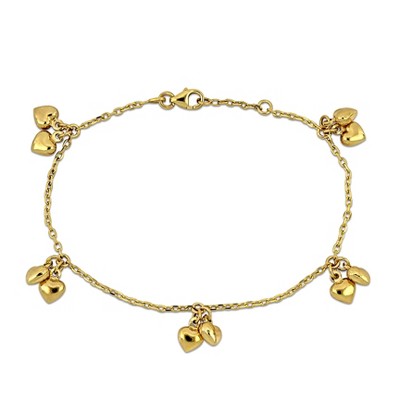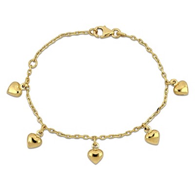 EVERLY JEWELRY | 14K Yellow Gold Five Heart Charm Station Bracelet, 5.5- inch