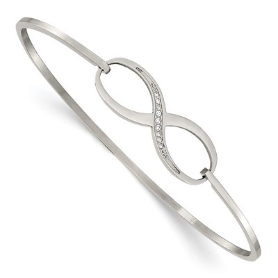 Chisel Stainless Steel Polished Cubic Zirconia Infinity Symbol Bangle