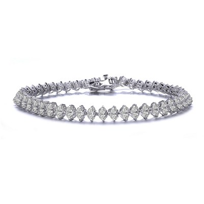 Guili Sterling Silver Heart Shaped Clear Cubic Zirconia Tennis Bracelet, Stunning Design with Sparkling Stones for a Romantic, Elegant Look