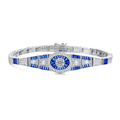 Guili Sterling Silver Blue Cubic Zirconia Tennis Bracelet, Stunning Blue Stones for a Dazzling and Elegant Design Perfect for Any Occasion