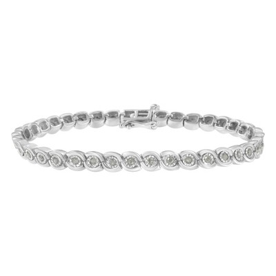 Haus of Brilliance Silver 1/10 cttw Miracle-Set Round-Cut Diamond "X" Link Tennis Bracelet
