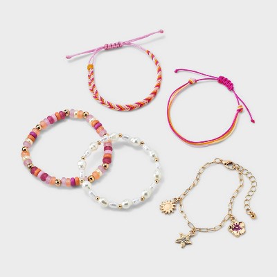 Girls' 5pk Sun and Hibiscus Flower Charm Bracelet Set - art class™ Pink