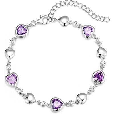 Bella Silver Sterling Silver CZ Circle Paperclip Bracelet - Silver - 7+1 Inch