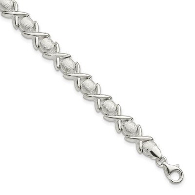 Black Bow Jewelry 7mm Sterling Silver Nugget Link Bracelet, 7 Inch
