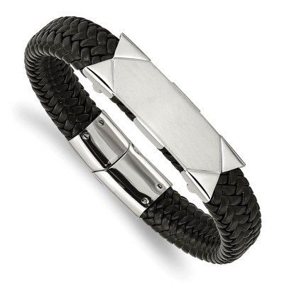 Black Bow Jewelry 13mm Stainless Steel Braided Black Leather I.D. Bracelet, 8.5 Inch