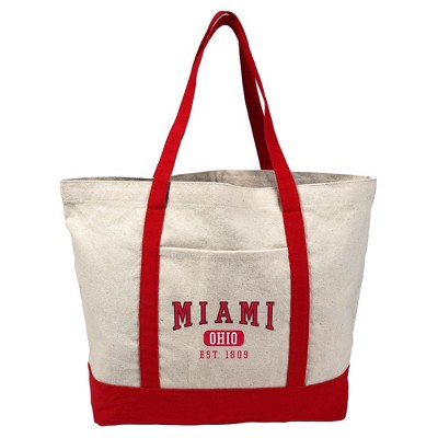 Miami University (Oh) Red Hawks Established Date Canvas Tote Bag With External Pocket, Reusable Shoulder Bag for Shopping, School, Beach