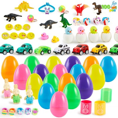 Joyfy 12 Pcs Prefilled Easter Eggs with Alloy Pull Back Cars, Plastic Eggs with Metal Vehicle Toys for Easter Basket Stuffers Kids Party Favors