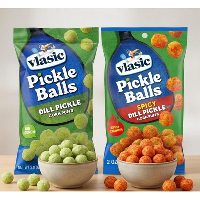 Vlasic Pickle Balls Corn Puffs | Dill Pickle or Spicy Dill Flavored Corn Puffs, 2 oz Bags | Available in Multiple Pack Sizes