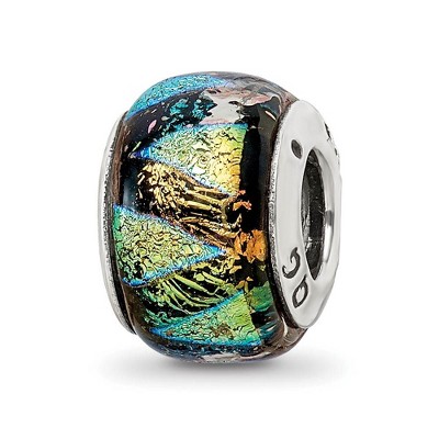 Black Bow Jewelry Green Hued Dichroic Glass Sterling Silver Bead Charm