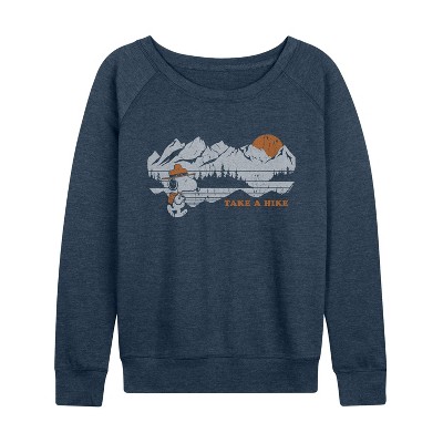 Women's - Peanuts - Take A Hike Lightweight French Terry Wide Neck Long Sleeve Graphic Shirt