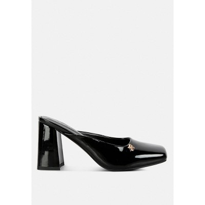 Neoplast Patent Pu Block Heeled Mules