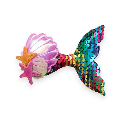 Summer Crystal - Sequin Mermaid Tail with Starry Shell Hair Clip - 1 Pack