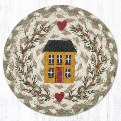 Earth Rugs House & Garland Round Coaster – Large 7" Primitive Country Table Protector