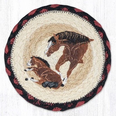 Earth Rugs Mom and Pony Round Large Coaster 7"x7" – Braided Jute Horse Print Coaster