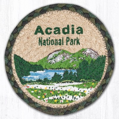 Earth Rugs Katahdin Round Coaster – 7"x7" Braided Jute with Mountain Scene, Rustic Nature-Inspired Table Accent