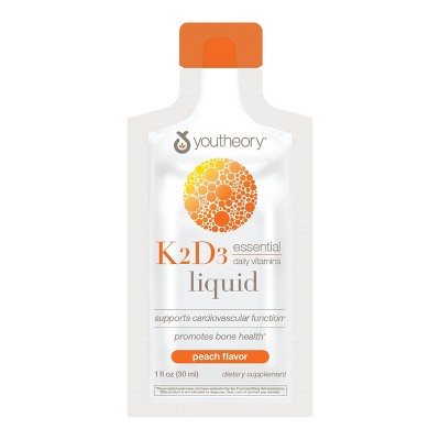 Youtheory K2D3 Liquid – Bone & Heart Health Support with Vitamin D3 & K2, Dairy, Soy & Gluten Free, Peach Flavor, 1 oz (12 Pack)