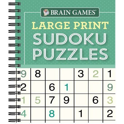Brain Games - Large Print Sudoku Puzzles (Green) - (Brain Games Large Print) by Publications International Ltd & Brain Games (Spiral Bound)