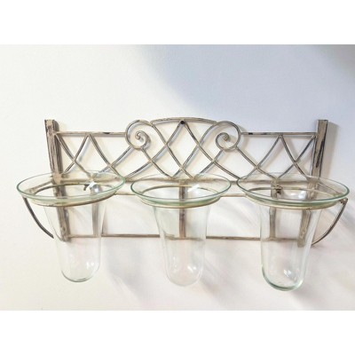 HomeRoots 12" Silver And Clear Geometric Iron And Glass Tabletop Hurricane Candle Holder