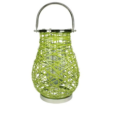 Essential Decor & Beyond 15.4" Tropical Bamboo Hanging Lantern With Glass Candle Holder and Rope Handle Decorative Accent