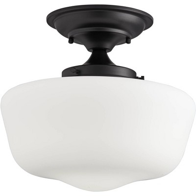 Regency Hill Modern Schoolhouse Farmhouse Ceiling Light Semi Flush Mount Fixture 12 1/4" Wide Black White Glass Shade for Bedroom Kitchen Living Room