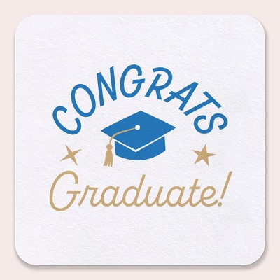 Big Dot of Happiness Blue Congrats Graduate Drink Coasters, 4-In Disposable Square Paper Coasters, Royal Blue Graduation Supplies, Table Decor - 25 Ct