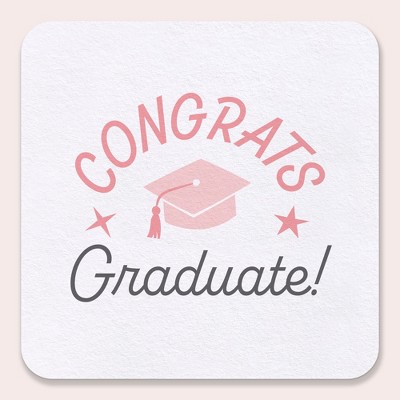 Big Dot of Happiness Pink Congrats Graduate Drink Coasters, 4-In Disposable Square Paper Coasters, Rose Gold Graduation Supplies, Table Decor - 25 Ct